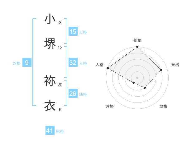 小堺 袮衣さんを姓名の画数から五運を鑑定