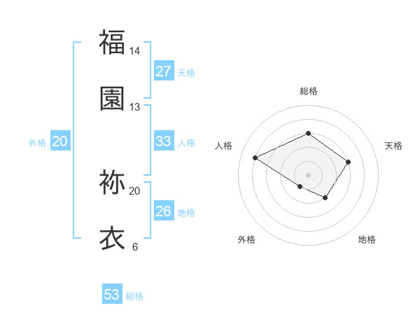 福園 袮衣さんの総格は53画の3点!