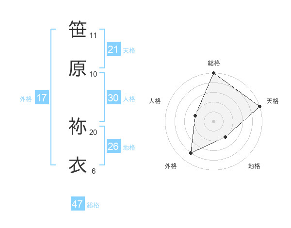 笹原 袮衣さんを姓名の画数から五運を鑑定