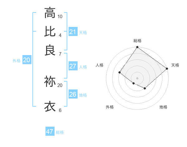 高比良 袮衣さんを姓名の画数から五運を鑑定