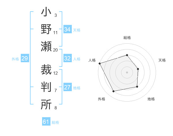 小野瀬 裁判所さんを姓名の画数から五運を鑑定