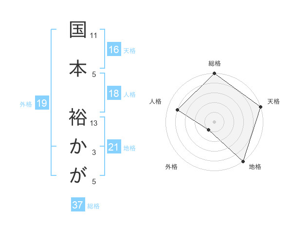 国本 裕かがさんの総格は37画の5点