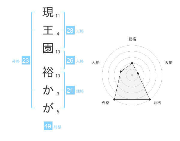 現王園 裕かがさんを姓名の画数から五運を鑑定
