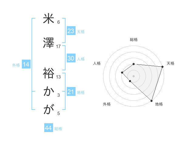 米澤 裕かがさんを姓名の画数から五運を鑑定