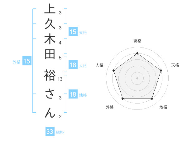 上久木田 裕さんさんを姓名の画数から五運を鑑定