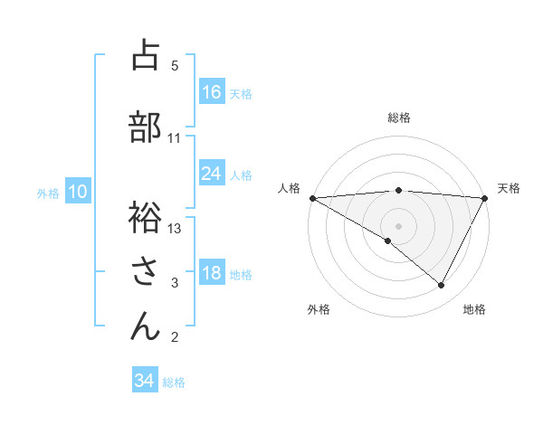 占部 裕さんさんの天格は16画の5点!