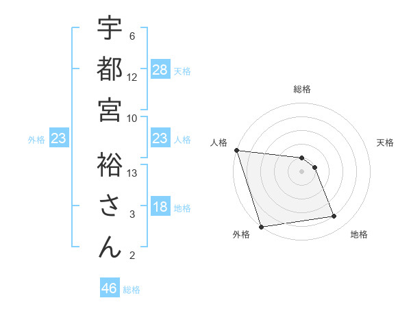 宇都宮 裕さんさんの総格は46画の1点!