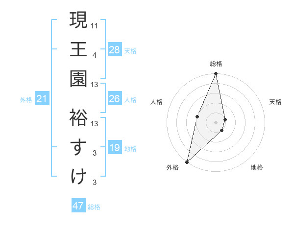 現王園 裕すけさんを姓名の画数から五運を鑑定