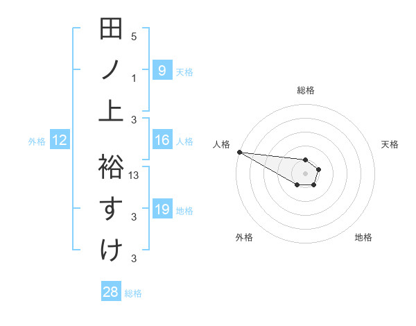 田ノ上 裕すけさんを姓名の画数から五運を鑑定