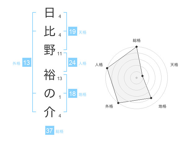 日比野 裕の介さんを姓名の画数から五運を鑑定