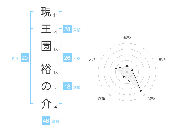 現王園 裕の介さんを姓名の画数から五運を鑑定