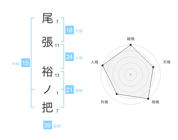 尾張 裕ノ把さんを姓名の画数から五運を鑑定