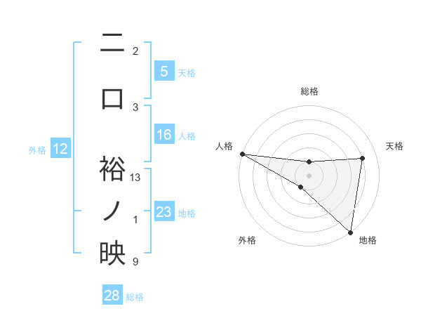 二口 裕ノ映さんを姓名の画数から五運を鑑定