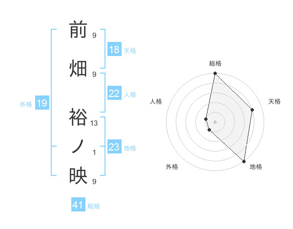 前畑 裕ノ映さんを姓名の画数から五運を鑑定