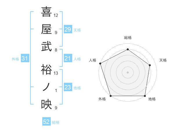 喜屋武 裕ノ映さんの外格は31画の5点!
