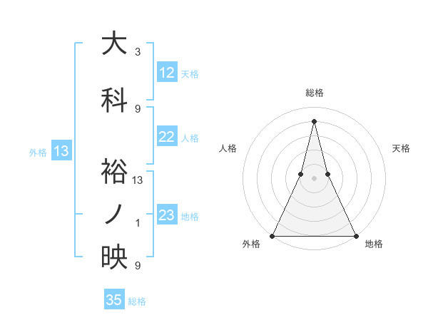 大科 裕ノ映さんを姓名の画数から五運を鑑定