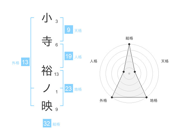 小寺 裕ノ映さんを姓名の画数から五運を鑑定
