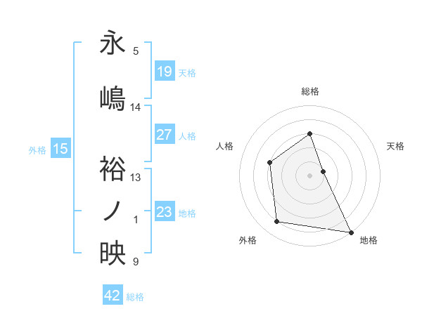 永嶋 裕ノ映さんの地格は23画の5点!