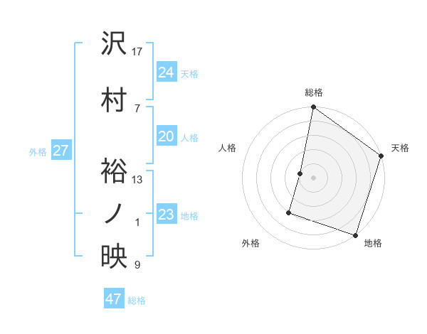沢村 裕ノ映さんを姓名の画数から五運を鑑定
