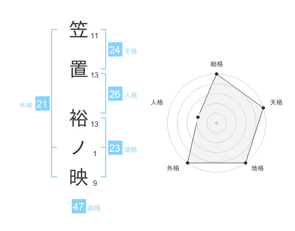 笠置 裕ノ映さんを姓名の画数から五運を鑑定