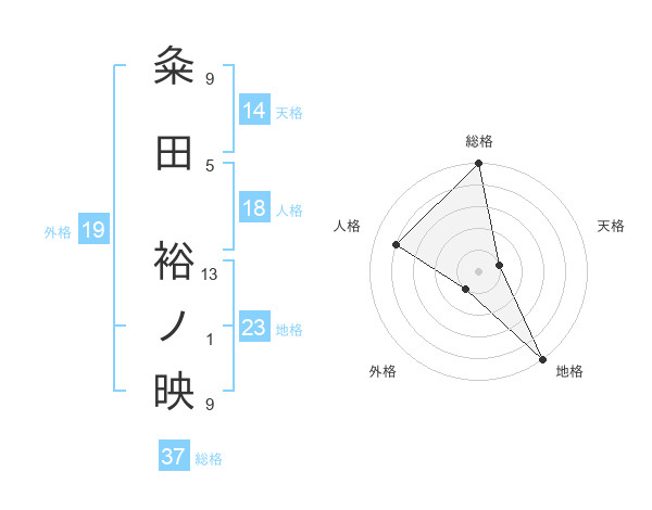 粂田 裕ノ映さんを姓名の画数から五運を鑑定