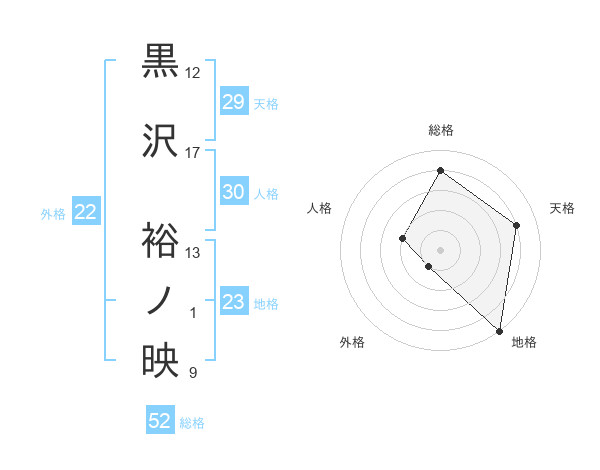 黒沢 裕ノ映さんの総格は52画の4点!