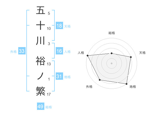 五十川 裕ノ繁さんを姓名の画数から五運を鑑定