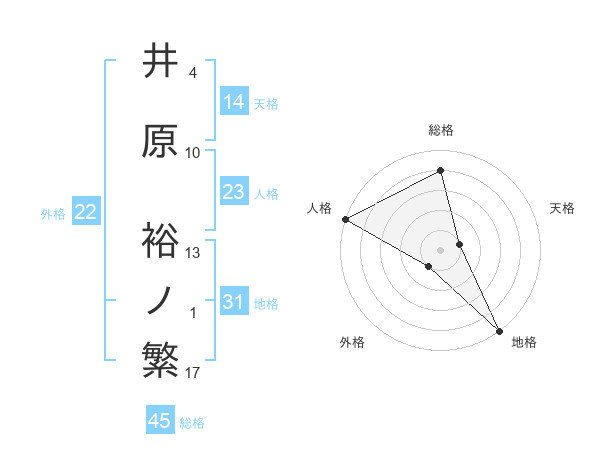 井原 裕ノ繁さんの総格は45画の4点!