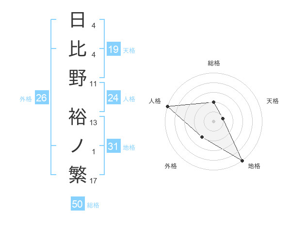 日比野 裕ノ繁さんを姓名の画数から五運を鑑定