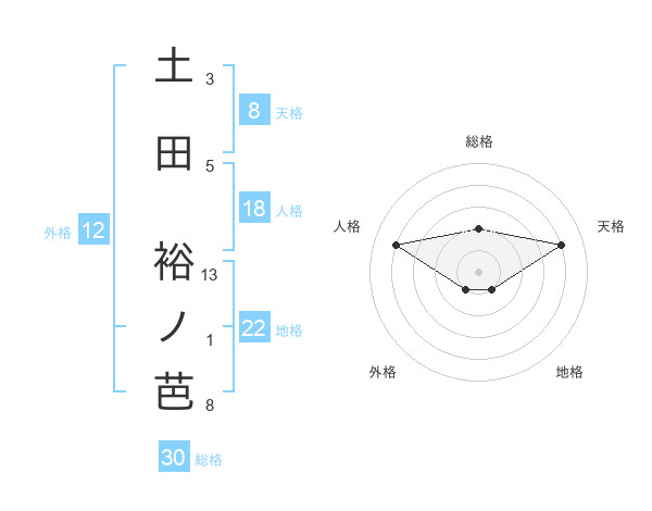 土田 裕ノ芭さんの総格は30画の2点