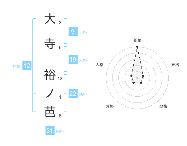 大寺 裕ノ芭さんを姓名の画数から五運を鑑定
