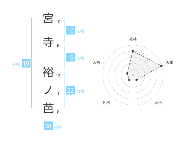 宮寺 裕ノ芭さんの総格は38画の4点!