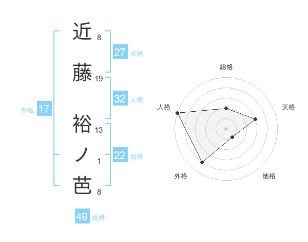 近藤 裕ノ芭さんの総格は49画の2点