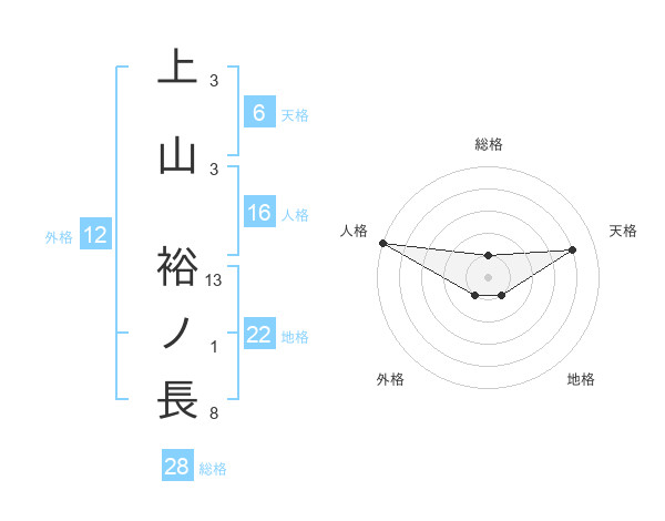 上山 裕ノ長さんの地格は22画の1点!
