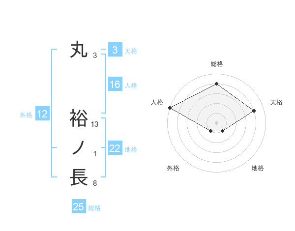 丸 裕ノ長さんの総格は25画の4点!