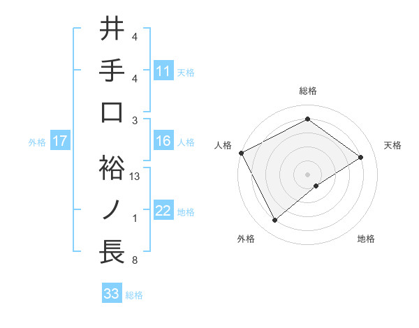 井手口 裕ノ長さんの総格は33画の4点!