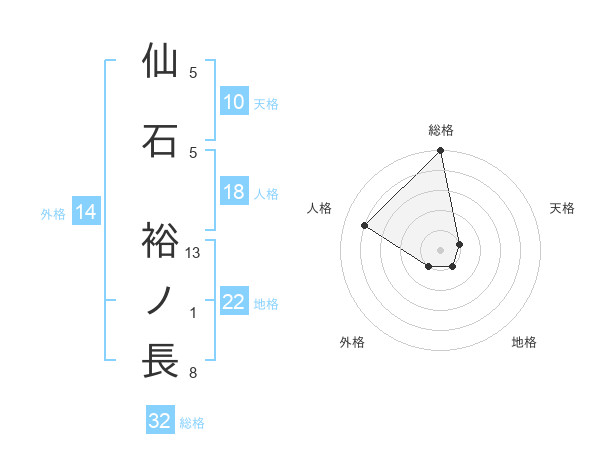 仙石 裕ノ長さんを姓名の画数から五運を鑑定
