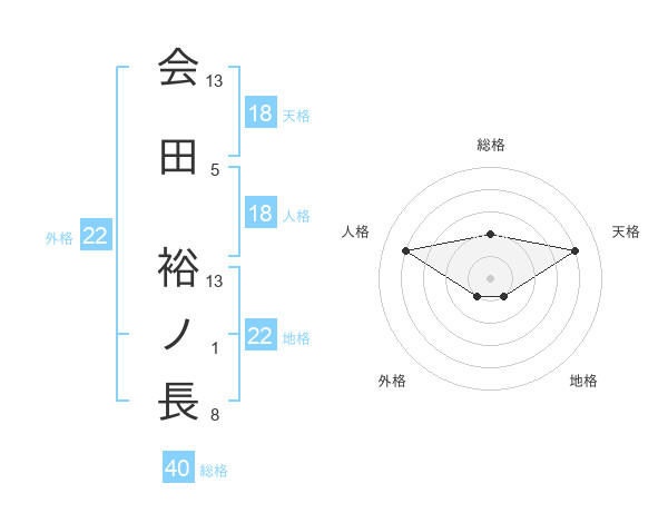 会田 裕ノ長さんを姓名の画数から五運を鑑定