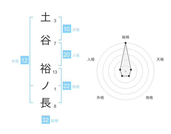土谷 裕ノ長さんを姓名の画数から五運を鑑定