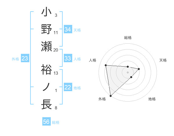 小野瀬 裕ノ長さんを姓名の画数から五運を鑑定