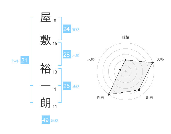 屋敷 裕一朗さんを姓名の画数から五運を鑑定