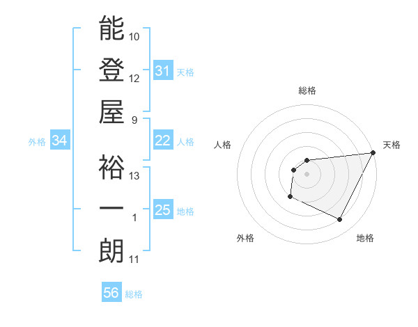能登屋 裕一朗さんを姓名の画数から五運を鑑定