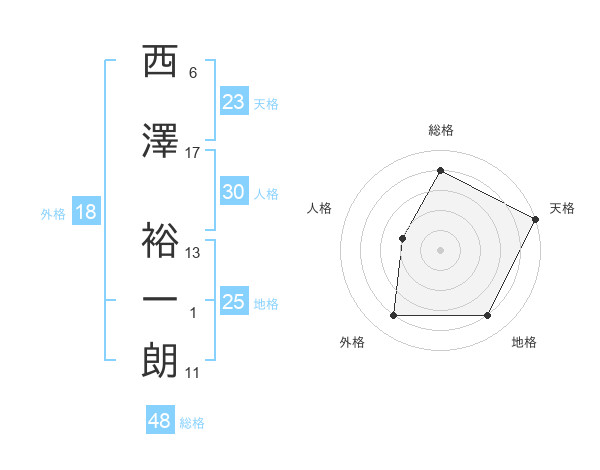 西澤 裕一朗さんの天格は23画の5点!