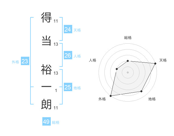 得当 裕一朗さんの総格は49画の2点!