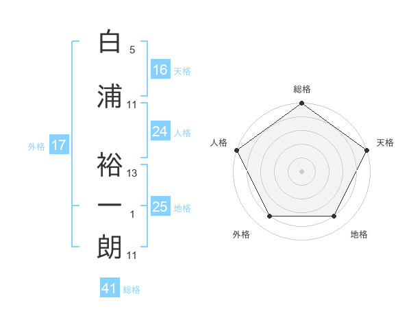 白浦 裕一朗さんの総格は41画の5点!