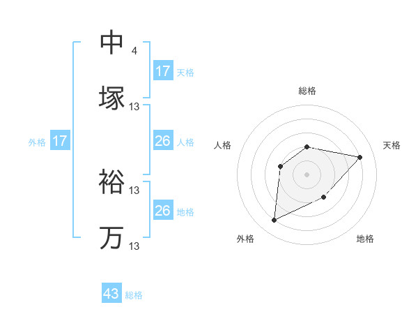 中塚 裕万さんを姓名の画数から五運を鑑定