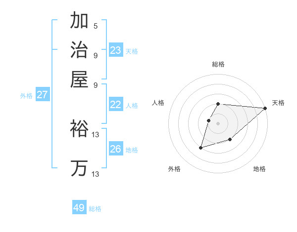 加治屋 裕万さんを姓名の画数から五運を鑑定