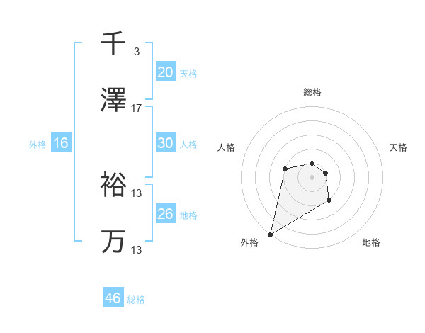 千澤 裕万さんを姓名の画数から五運を鑑定
