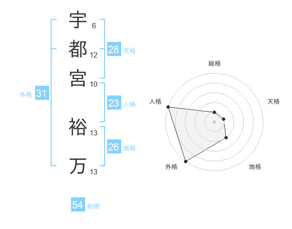 宇都宮 裕万さんを姓名の画数から五運を鑑定