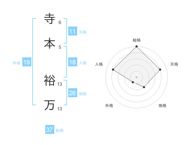 寺本 裕万さんの総格は37画の5点!